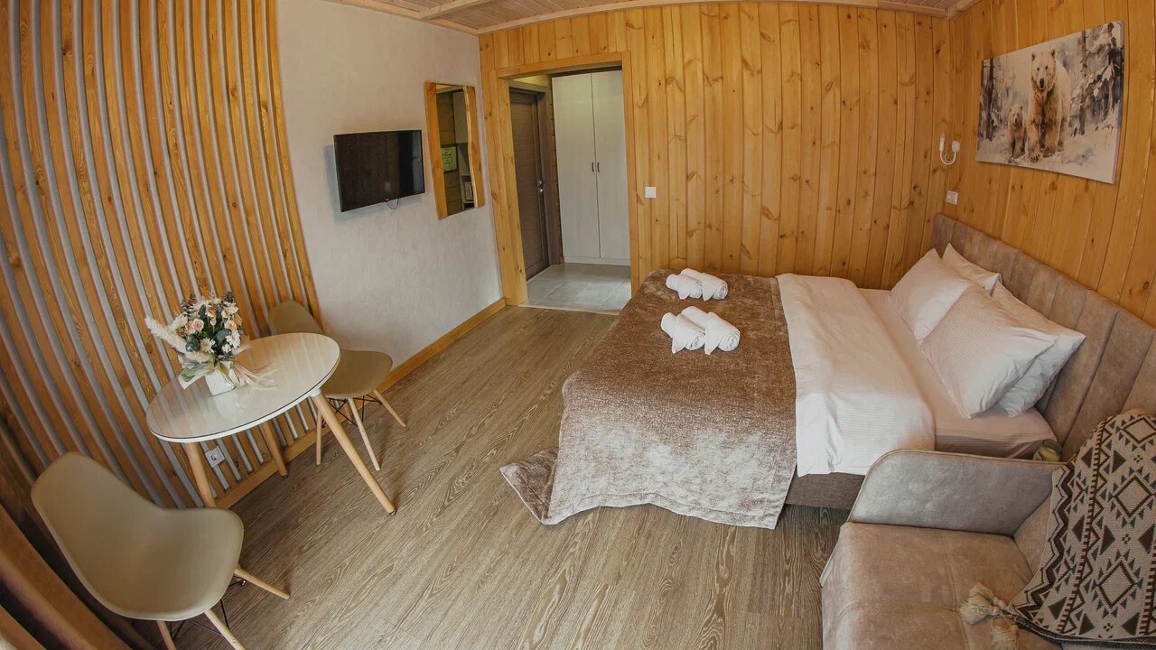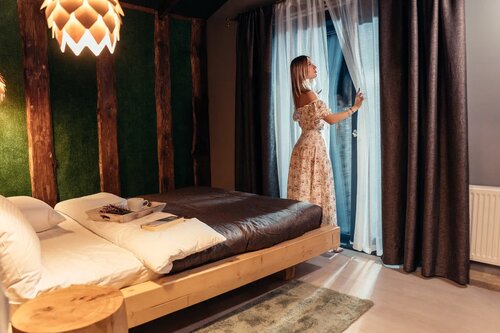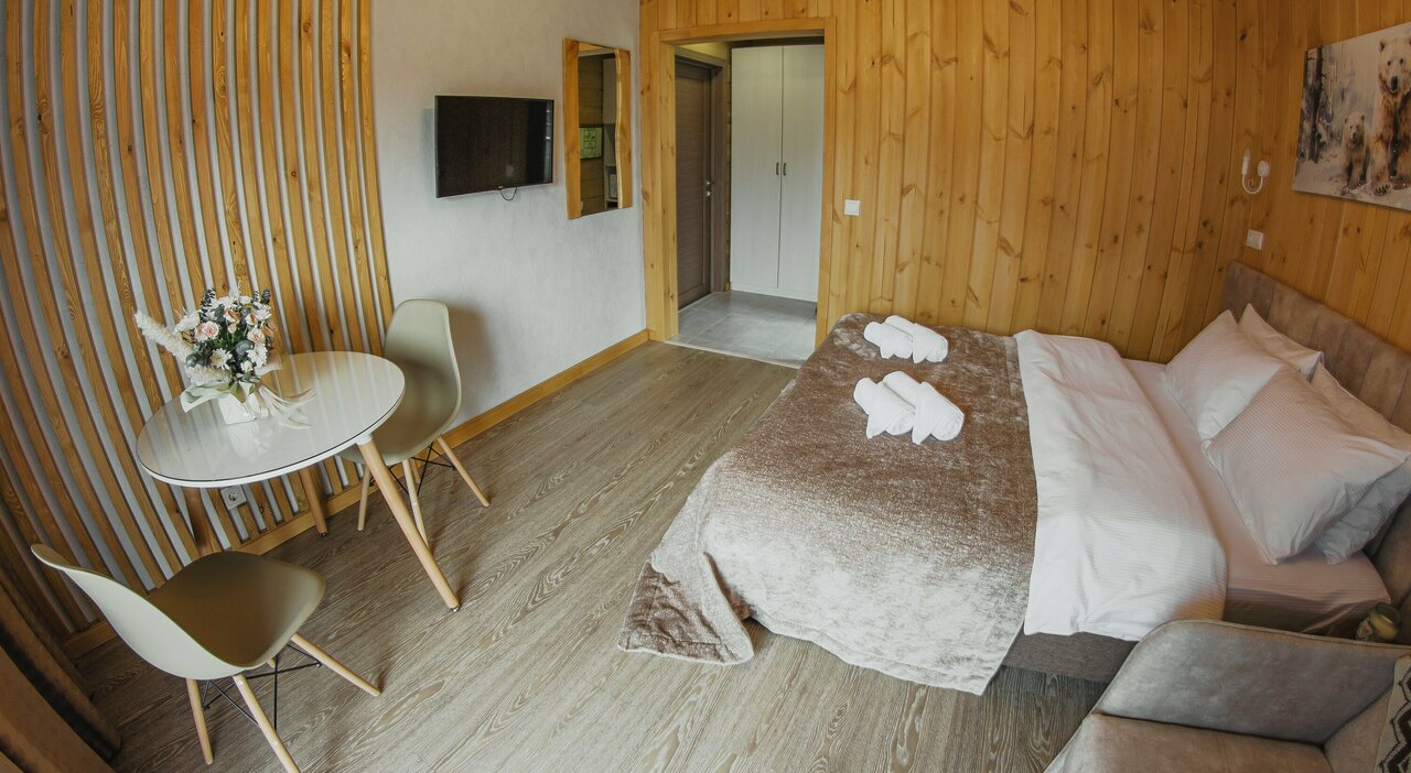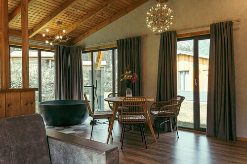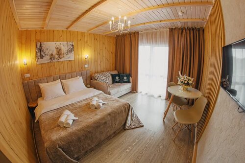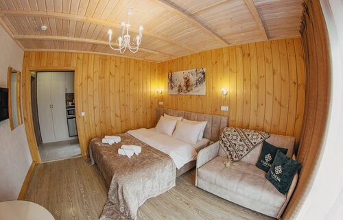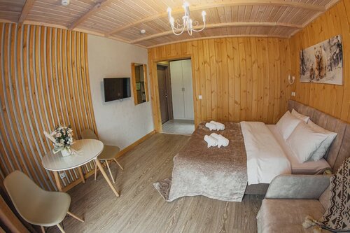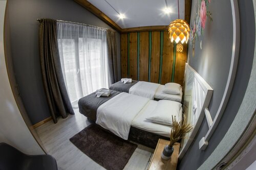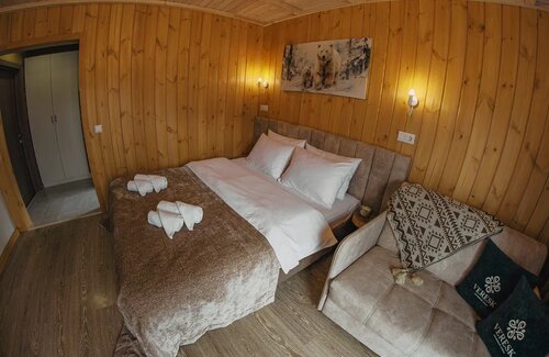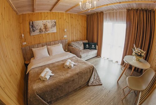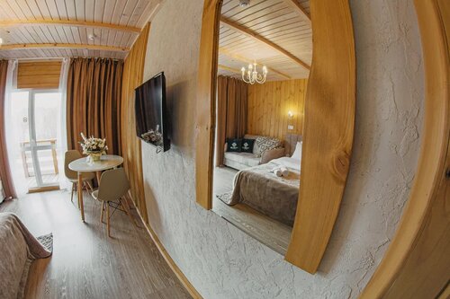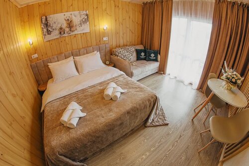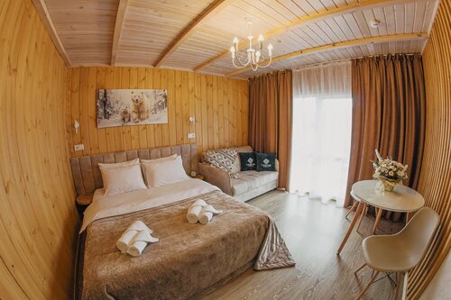Отель очень понравился местом расположения и ландшафтным оформлением. Очень внимательный и доброжелательный персонал. Шале великолепно, чисто, атмосферно! Сауна и бассейны оказались сюрпризом, потому что пользоваться ими можно было бесплатно! Обязательно рекомендуем всем друзьям и знакомым!