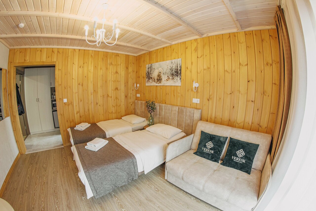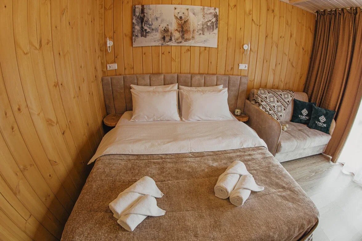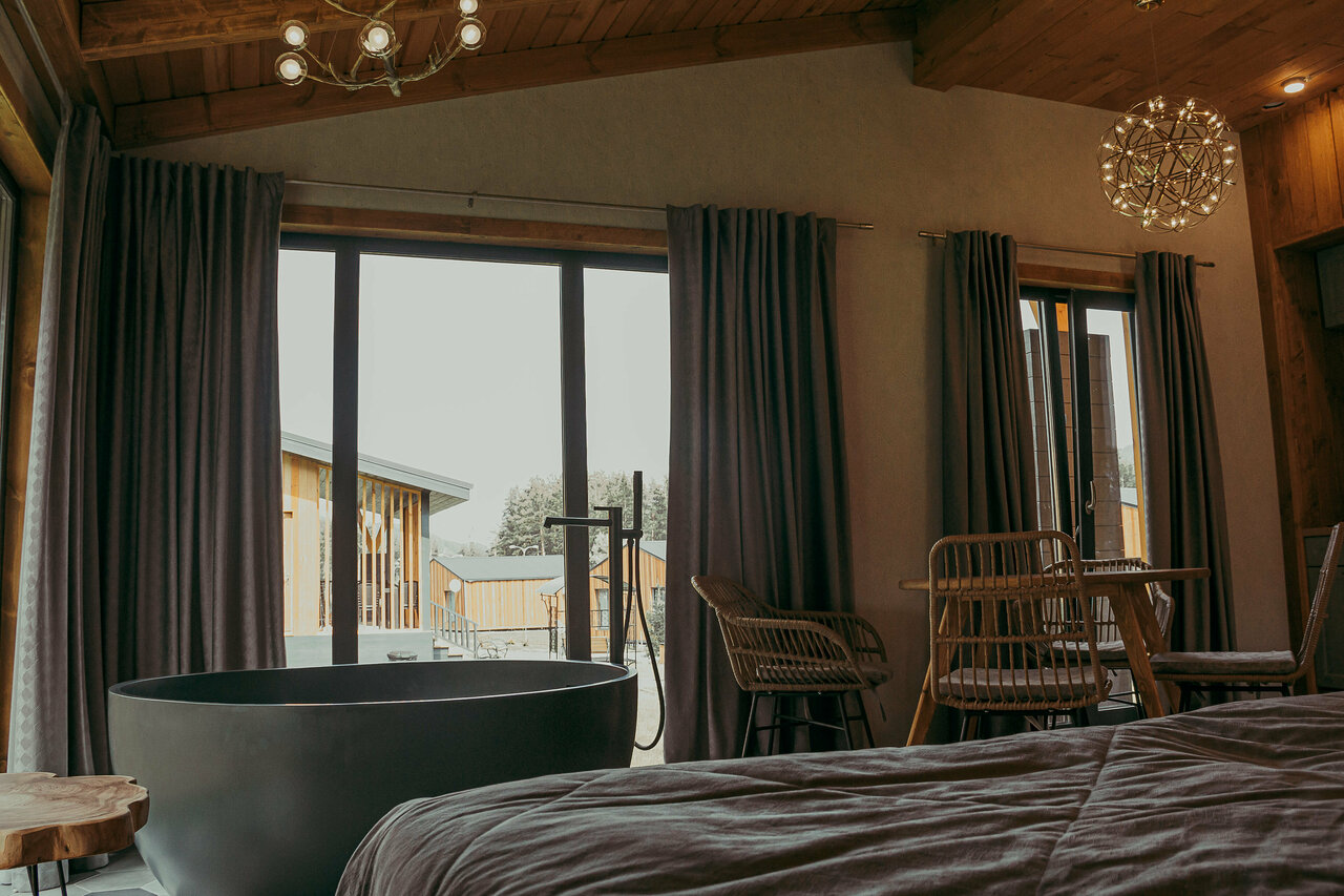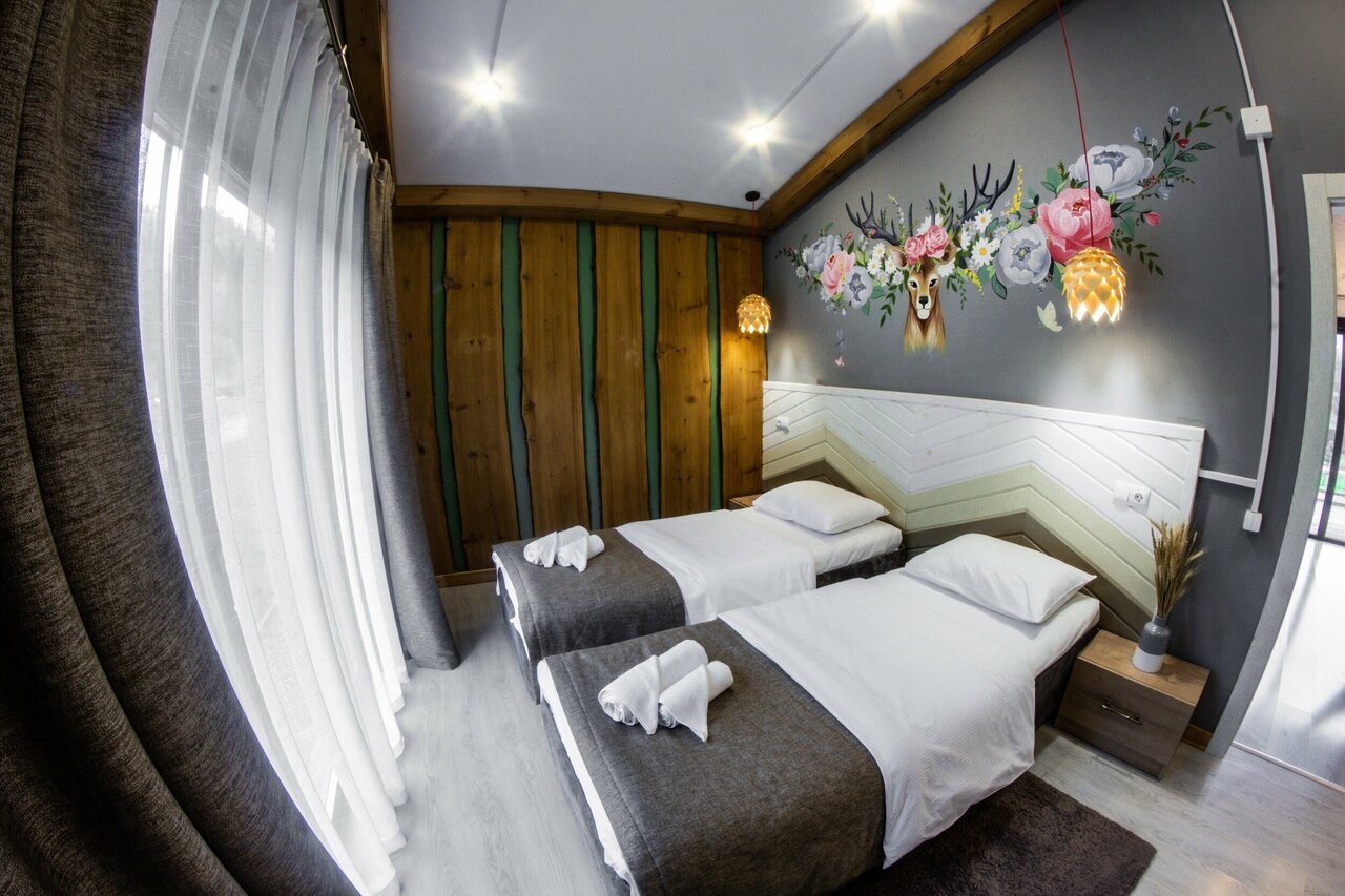 Отель очень понравился местом расположения и ландшафтным оформлением. Очень внимательный и доброжелательный персонал. Шале великолепно, чисто, атмосферно! Сауна и бассейны оказались сюрпризом, потому что пользоваться ими можно было бесплатно! Обязательно рекомендуем всем друзьям и знакомым!