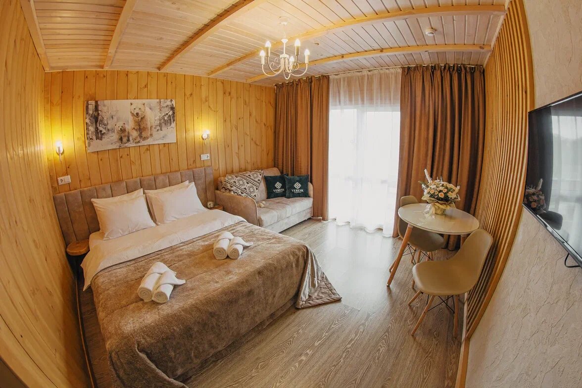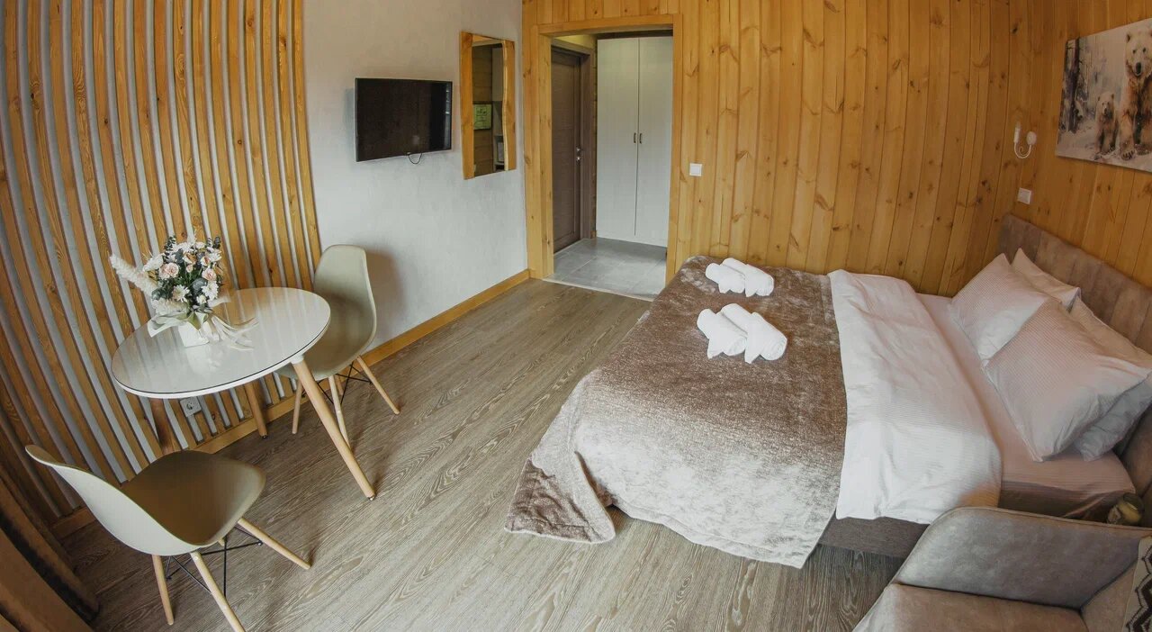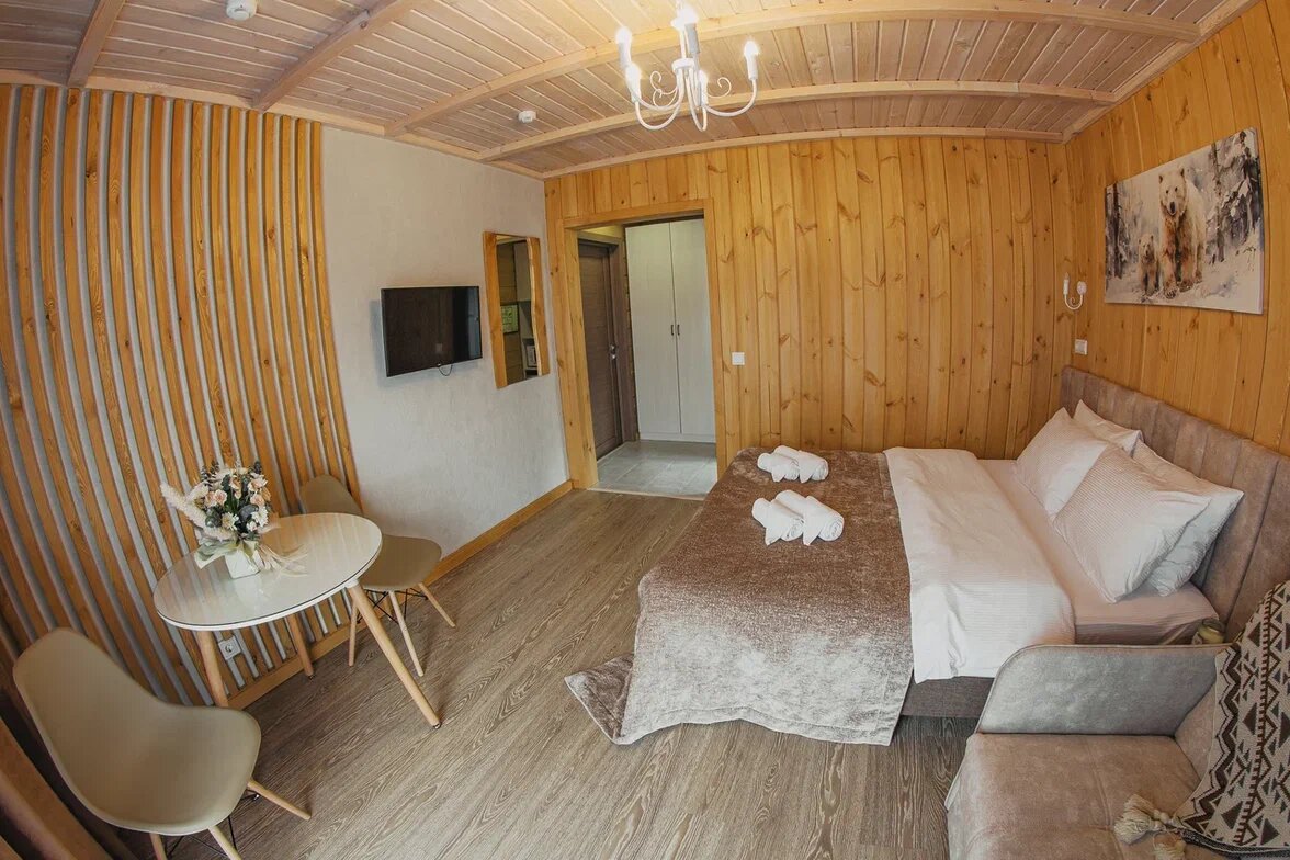 Отличное место для отдыха: на территории есть бассейн с сауной, беседки, мангальная зона. Персонал вежливый, убирают чисто и меняют полотенца. В аппартаментах 2 балкона, с одного вид на гору, с другого на Катунь. Отдыхаем здесь 2й раз и однозначно рекомендую