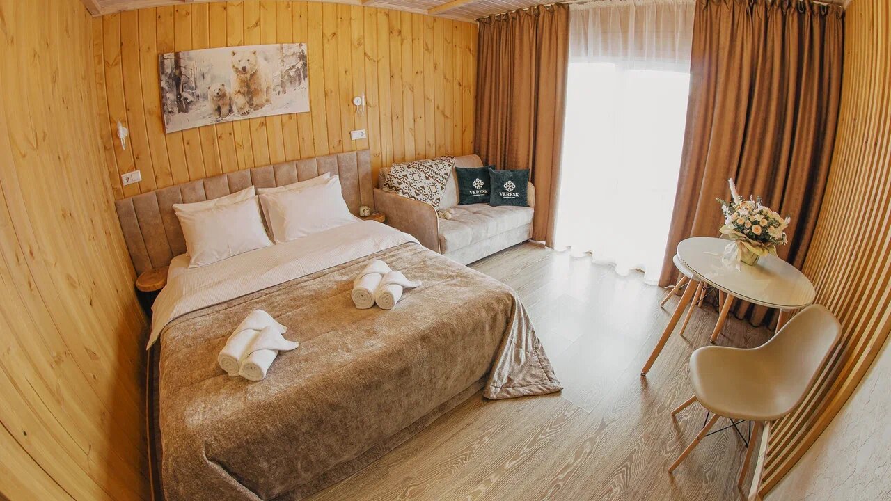 И остались в полном восторге ! Ухоженная территория, теплый бассейн с сауной, уютный номер со всем необходимым для проживания (удобная кровать, белоснежное постельное, фен, микроволновка, холодильник, тапочки, два комплекта полотенец на каждого человека)